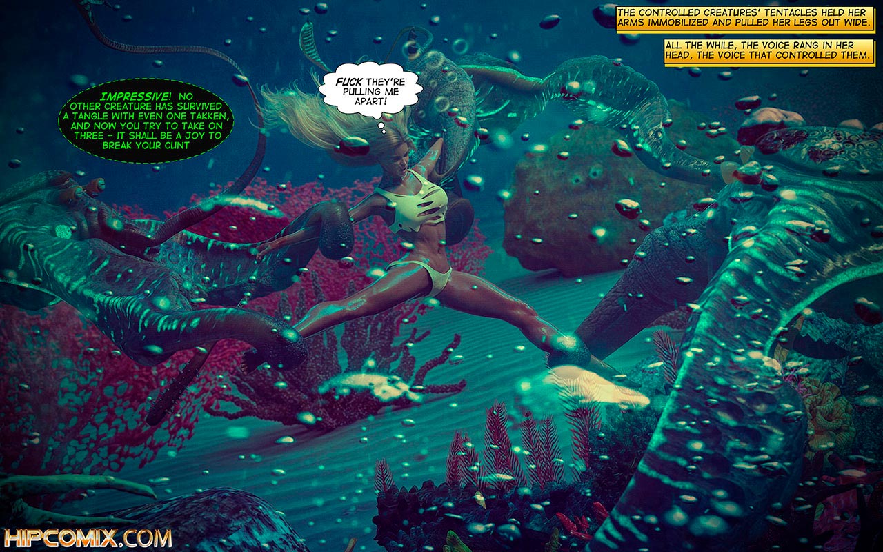 After a struggle she was in real trouble, the controlled creatures' tentacles held her arms immobilized and pulled her legs out wide. All the while, the voice rang in her head, the voice that controlled them.