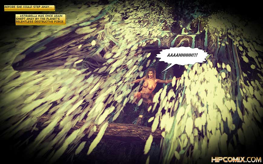 From the safety, Astrarella saw the apes across the river shouting, but unable to reach her. But soon Astrarella realized that the river was not as safe as he thought... A swift current of water was moving through the canal, sweeping everything away and before she could step away... Astrarella was once again swept away by the planet's relentless destructive force!