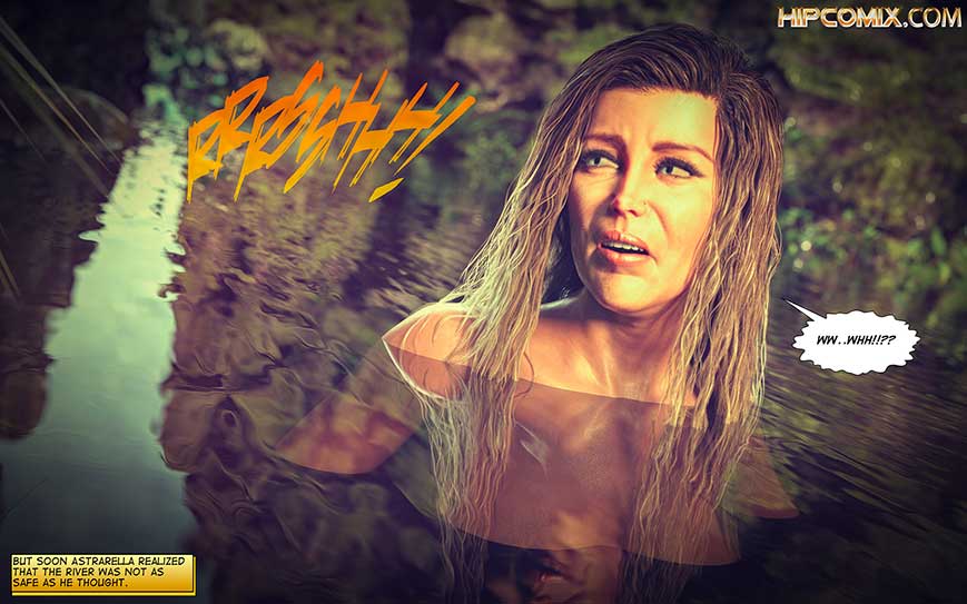 Seconds after the impact against water, Astrarella vanished into the depths of the river... to emerge as an elegant mermaid.