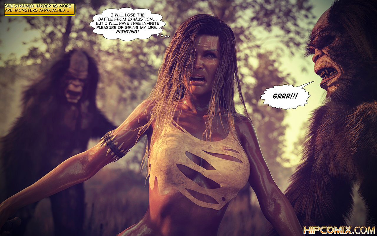 Soon, she was engaged in a new mortal battle, even outnumbered by the strong beasts... she was the clear winner... But then she realized that the elders were using the ape-beasts as distraction and the real danger was behind her.