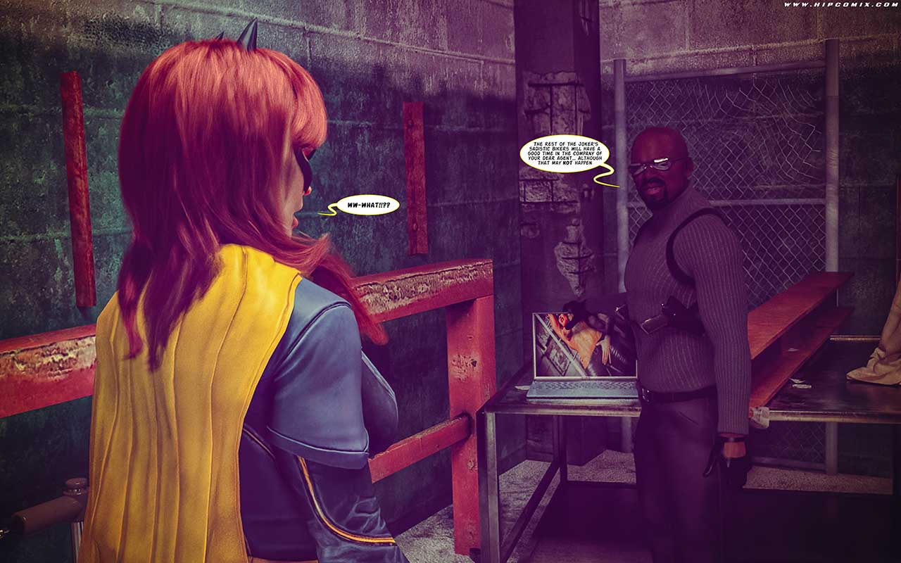 GOTHAM CITY... Detective Montoya is a prisoner in the hands of the Joker's gang of perverted bikers, In the shadows of the night a lonely figure is moving to help the captive detective... BATGIRL has defeated the bullies around the old factory, but when she entered in the ruined warehouse she found someone different inside...