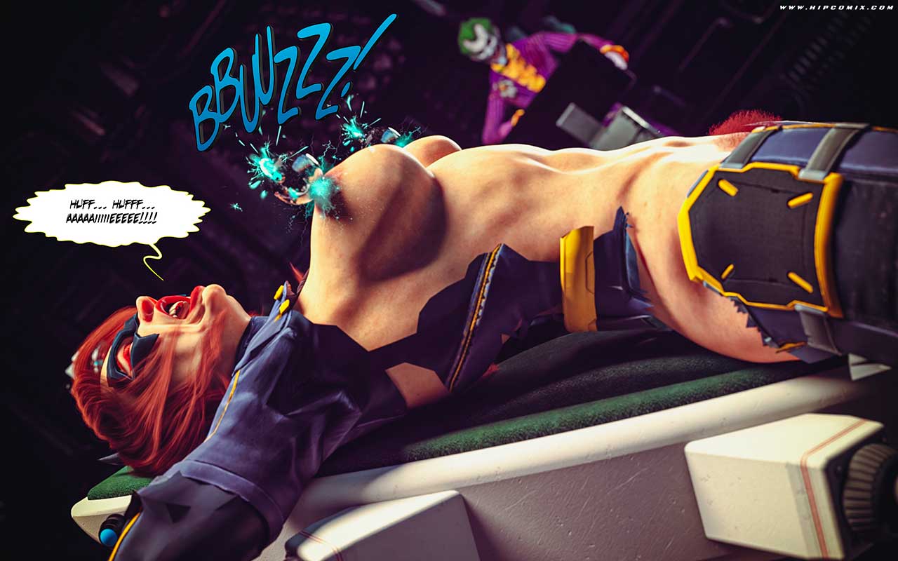 Batgirl has been captured after the betrayal of Detective Flass... Now she's bound helpless in the hands of her archenemies The Joker and Harley Quinn, who plan to break her in body and mind!