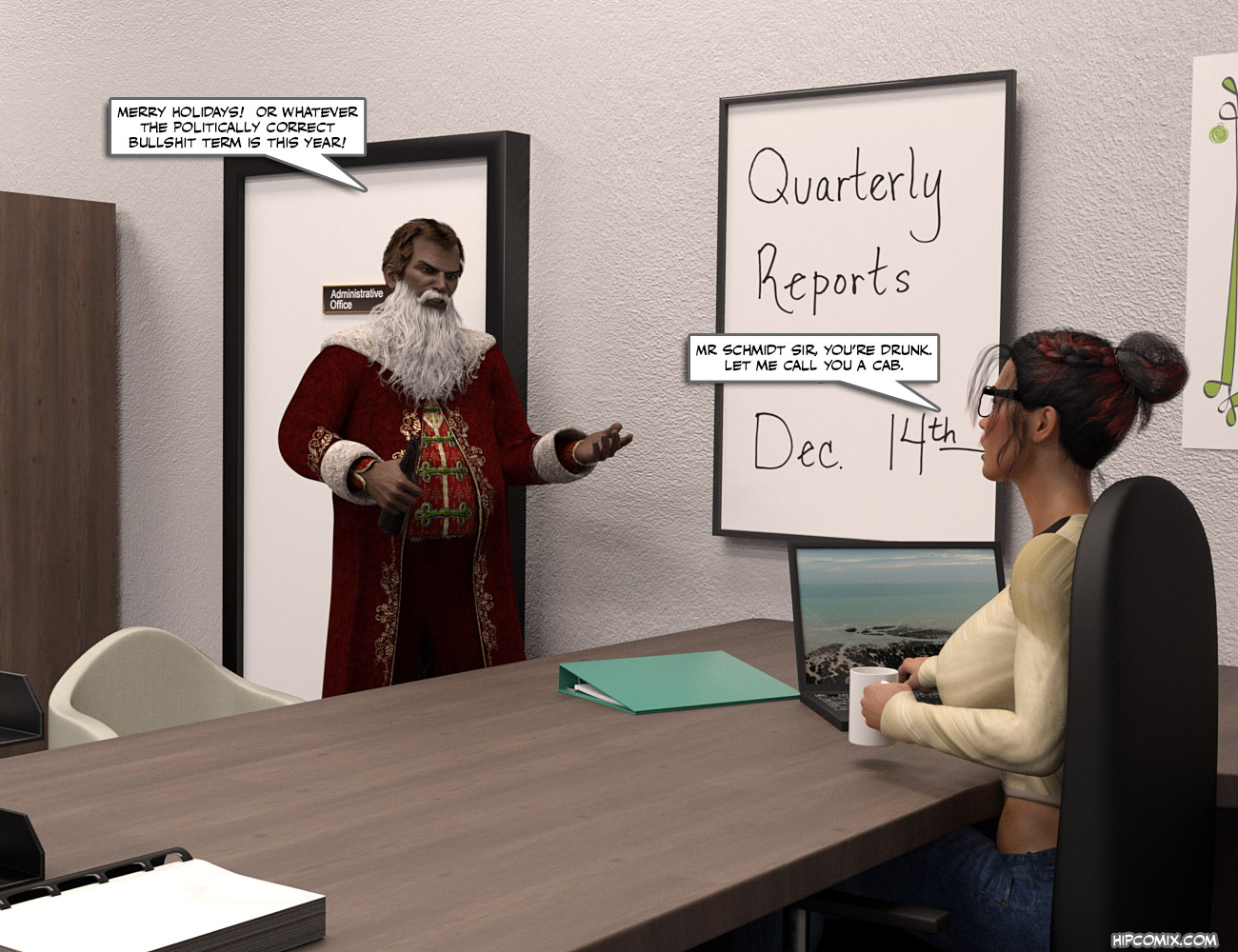 Our story begins with a young secretary named Nova Davis working late night at a holiday party for her boss, Zack Schmidt. Zack is not a nice man. Zack wants more than what he's been getting from his lovely young assistant. He's drunk, and ready to push his luck. How will our young Miss Davis handle her boss’ unwanted advancements? Find out in this new and exciting adventure of Miss Independence: a Christmas Nightmare. Episode 01 posting now for members now!
