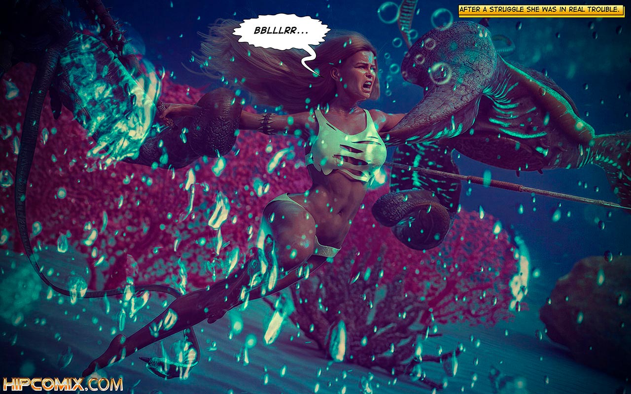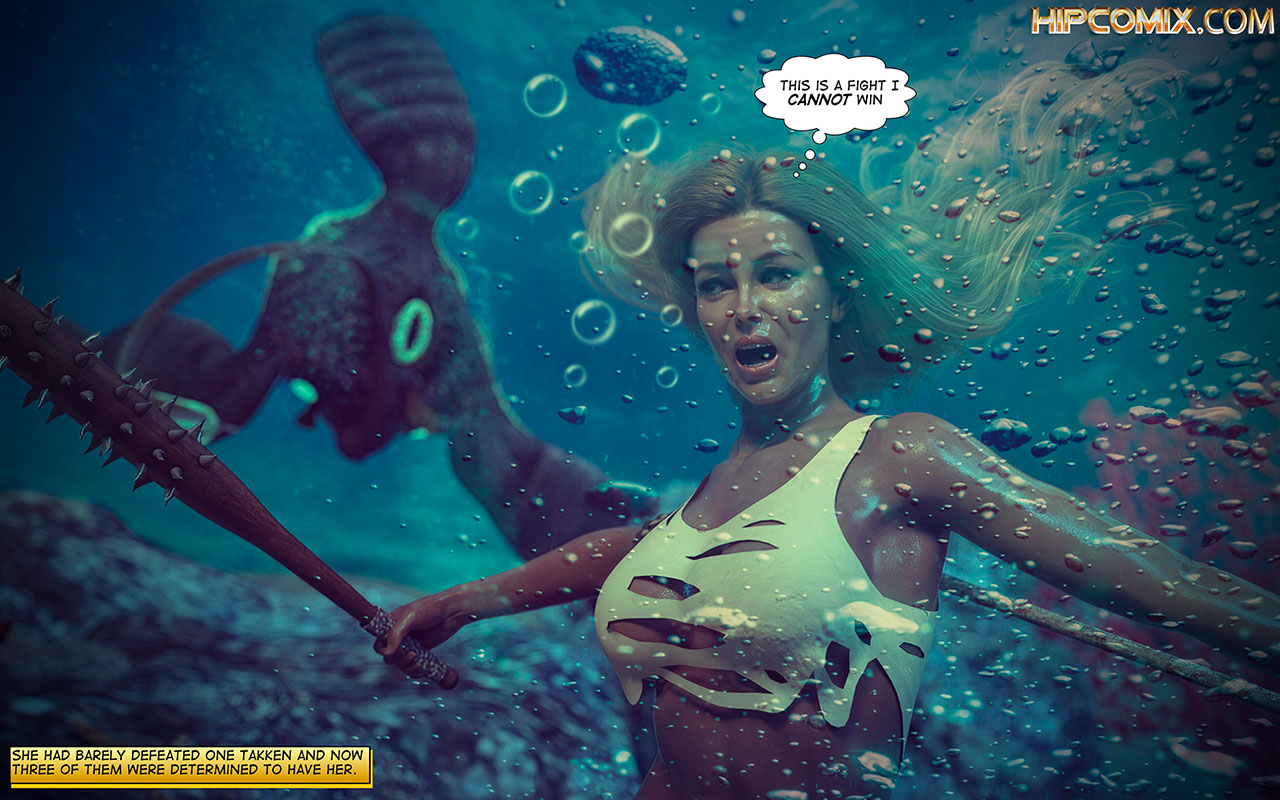 Underwater the exhausted Astrid was fighting a desperate battle, one that she was losing. Her nanites were burned out, giving her only constant healing, but no extra strength or power. She had barely defeated one Takken and now three of them were determined to have her.