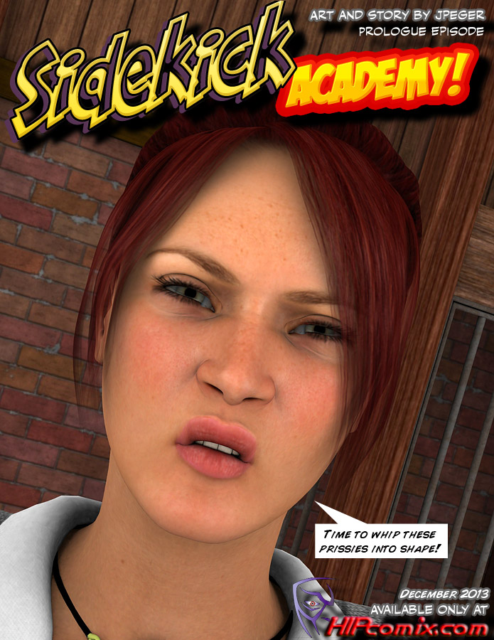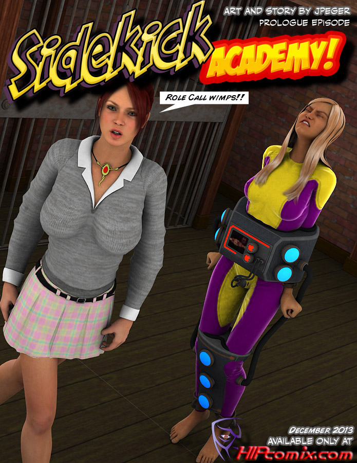 Good news is, this allows me to work on something that I rather fortunately stumbled across while promoting our Facebook page (facebook.com/hipcomix), and that is "The Sidekick Academy"! I would find images of young ladies that were tied up, and I would post something rather humorous about it like they were captured sidekicks Then I thought, why not make this into a series?