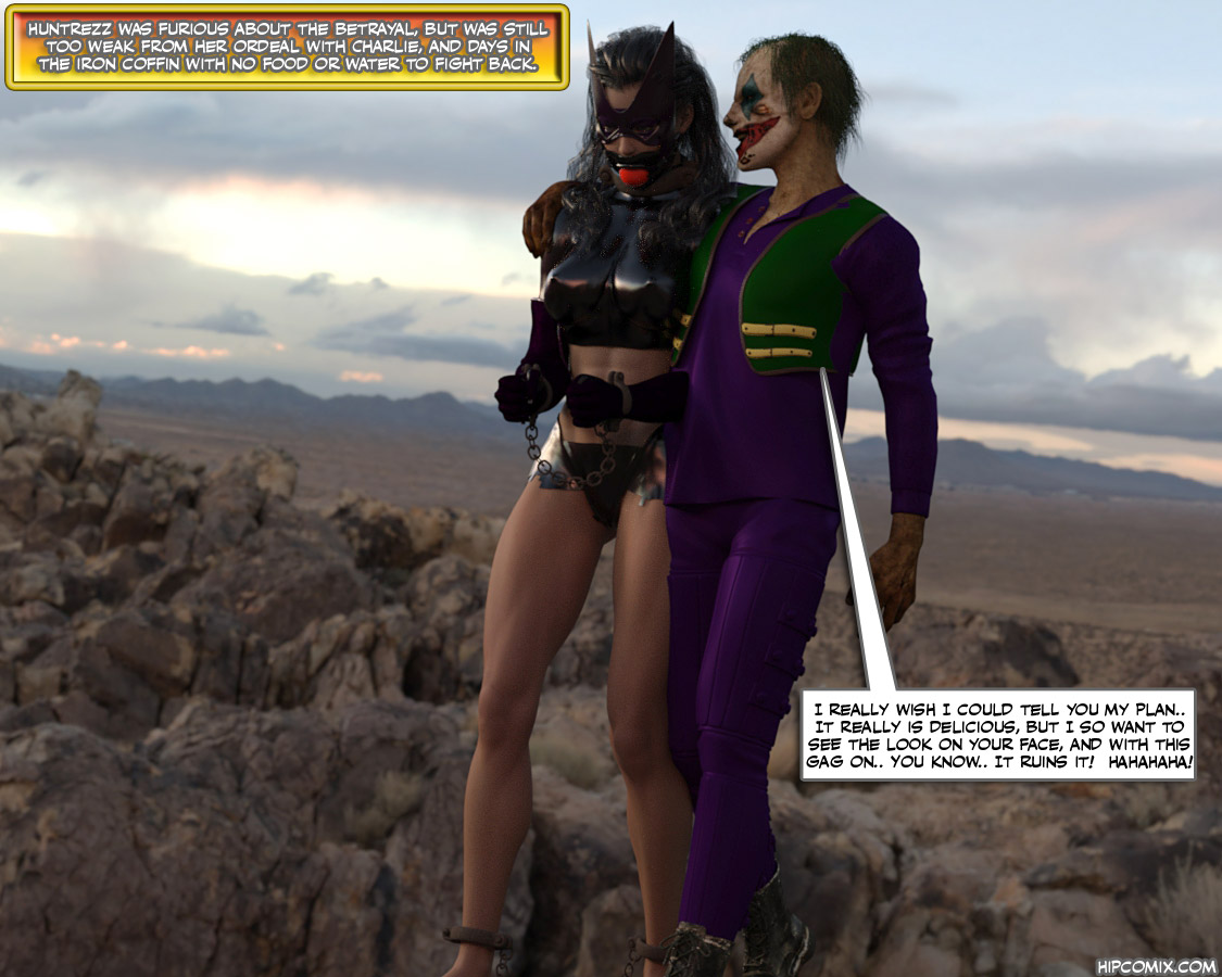 So we left off that Huntrezz was entombed in a sarcophagus, ready to transport to the South American white slavers. Even after she did all that perverted sexual thing for them! What a double crosser that Jokester is!