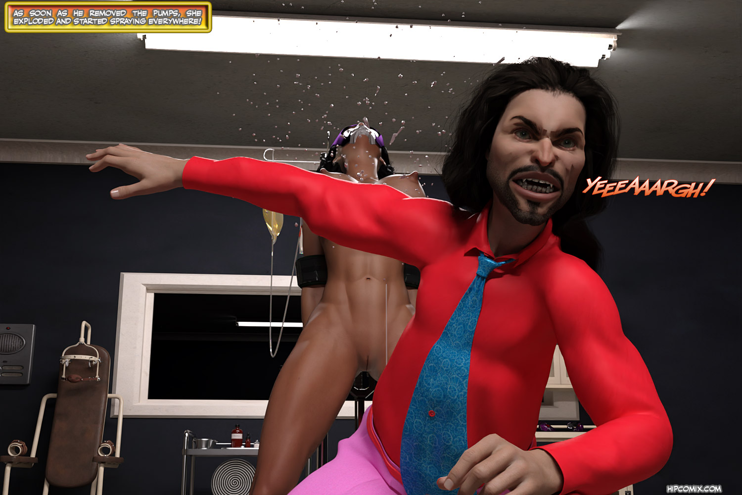 Huntrezz and Robyn have been captured, and while Robyn must fight Harla Quinn in a cage match of Chloroform, Huntrezz is dealing with her new breast issues!! The doctor has pumped her full of hormones, and she is now producing breastmilk at an exponential rate, filling containers full of delicious Superheroine cream for him to sell on the black market. But that’s not his real plan. His actual goal is to get her two full production mode so he can cut off the pumps and let her breasts ache as they fill to mamerious magnitude!! His theory is she will get to a point where she can no longer take the discomfort and beg for him to take over her mind. Will he succeed?