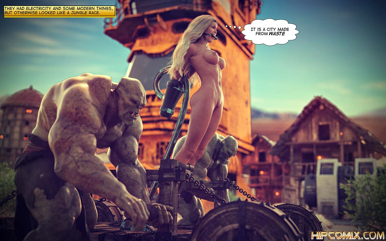 Two days later... The retinue was reaching the holy city of the Bareelians... the past days she bound in agony and for--d to serve her captors. Then among the last trees in the jungle, Astrid began to glimpse the eclectic Bareelian settlement, They had electricity and some modern things, but otherwise looked like a jungle race.