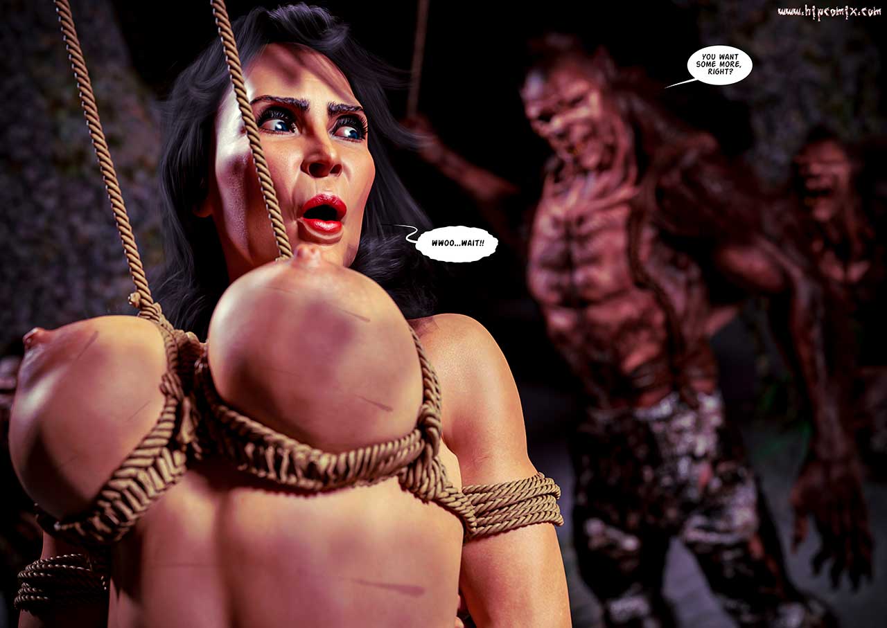 Stella confronted the young werewolves pack and get hurt with a mysterious arcane weapon filled with arkanium dust... with her powers gone, now she is suffering a cruel interrogation in the hands of the wolfpack. Whipped while she's tied in a painful rope suspensions, the pain is taking control over her entire body... but the hard vampire huntress refuses to talk!CLICK HERE to read STELLA Queen of Darkness - Samhain Rampage:
