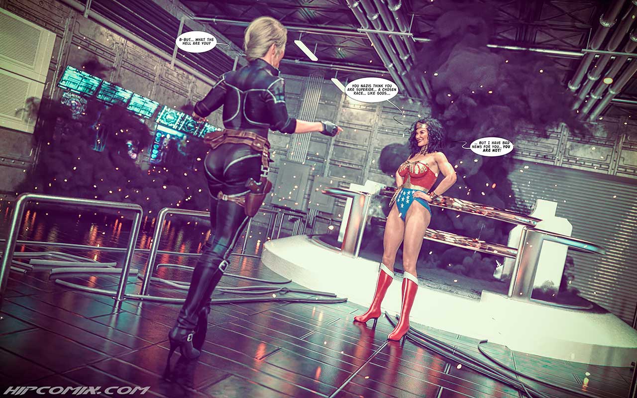 The experienced I.D.A.C. agent Dian Aprice has been caught in a trap and she woke up in the depths of the Nazi fortress. The evil doctor Ilsa Schatt does not hesitate to use her sinister machines to find out what the spy but she soon discovered the true indenity of the agent when she turned into the famous superheroine Blunder Woman.