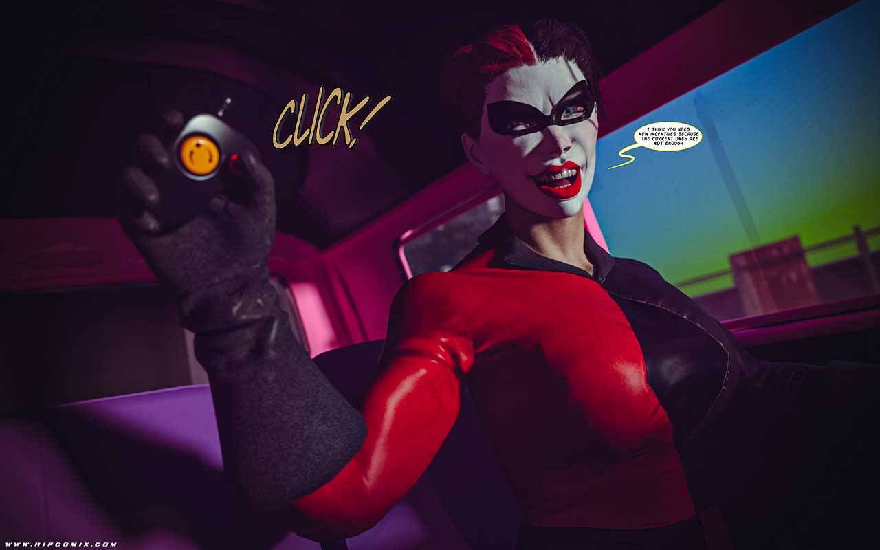 Batgirl is still captive... Now with the kinky video-show concluded, She's asking for getting free again... But The Joker and Harley Quinn have different plans for her. The nighttime streets of Gotham were being traversed by the van driven by Harley Quinn, with Batgirl trapped inside the hot box.CLICK HERE to read Heroine Astonishing Bondage Adventures - BAT EXPLOITATION #14: