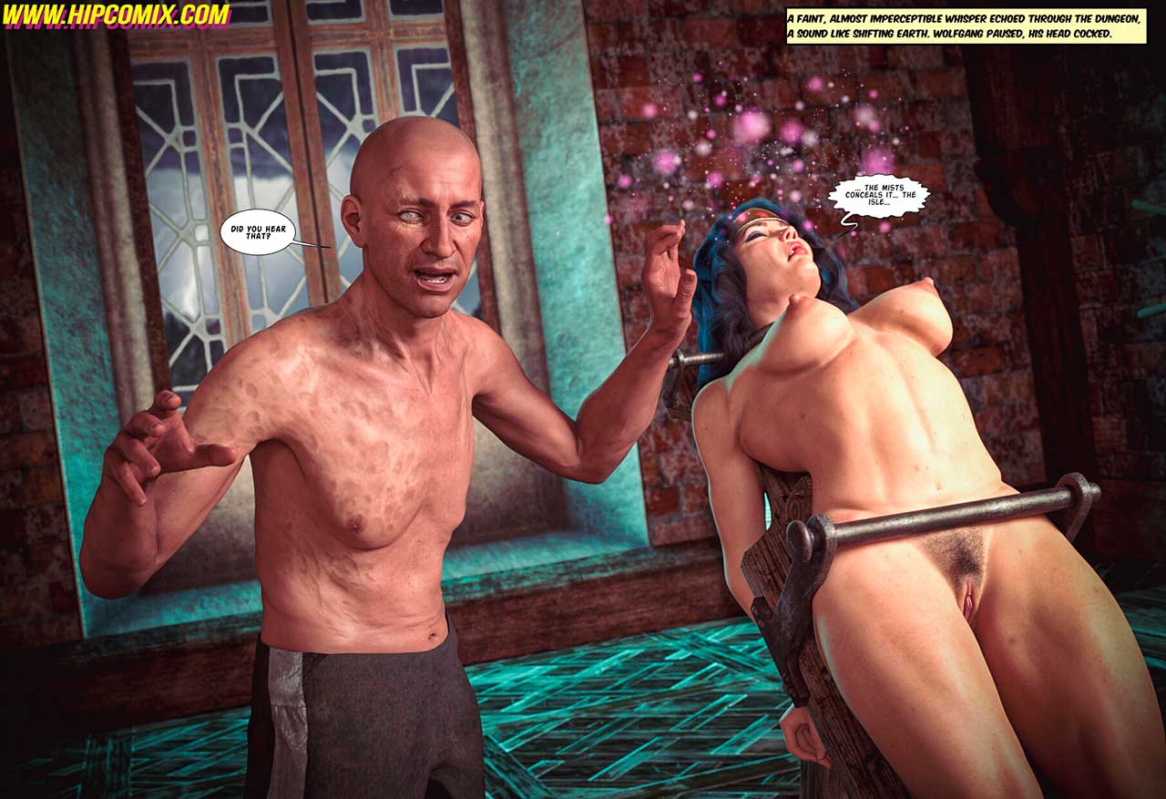 Castle Schatt's Dungeon... A place of unspeakable horrors. The villainous Colonel Schatt subjected Wonder Woman to cruel and inhumane treatment using an abhorrent torture device inspired by the brutal methods of the ancient Inquisition, all in his relentless pursuit of information regarding the whereabouts of the legendary and mythical Paradise Island. Following his unsuccessful attempt, he is now preparing to employ a different method in order to obtain the valuable information from the courageous Amazon princess who remains his captive... However, as a result of the drug she has been administered, Diana is on the verge of disclosing the secret location of Paradise Island. Just as she is about to reveal this critical information, an unforeseen individual suddenly makes an entrance, interrupting the moment!