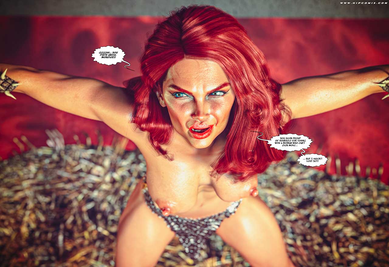 Red Sonja is now sharing the valiant priestess Maelia Ironheart's torments in the infamous Fortress of Gloom... The evil witcher Lord Anaal wants to use the primal suffering and pleasure feelings of the captive heroines to feed the insane dark magic of the shrine to rebirth himself, using the most infamous spells of ancient black magic... Sonja faces an uncertain fate in the hands of the evil sorceror!